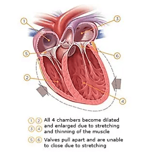 CARDIOMYOPATHYCardiomyopathy in dogs is usually a type called dilated cardiomyopathy (DCM). It is a disease which causes weakness of the heart muscle and progressive dilation of the heart chambers. Due to the breed predisposition of Cockers, Dobermans, Boxers, Great Danes and other giant breeds, there is thought to be an inherited factor, but the exact cause is poorly defined. Recently there have also been cases of DCM in non-typical breeds which may have a nutritional link to feeding grain free, exotic protein, or home cooked diets. This may be due to a deficiency in protein sources which contain adequate taurine, but it is an area under continued investigation. For now we feel it is best to err on the side of caution and avoid such diets. Please call if you have been feeding one of these diets and are concerned or if you would like a recommendation for your pet’s diet. More information on DCM linked to nutrition is available here and here. |